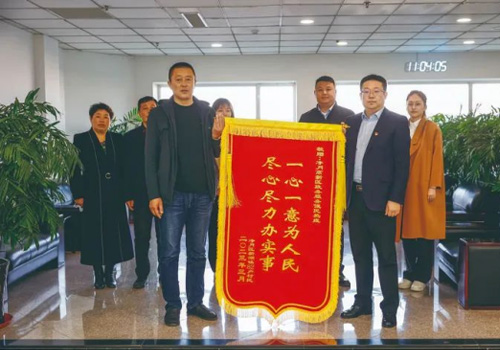 “一心一意为人民,尽心尽力办实事”。近日,来自净月高新区新湖镇的4位村民代表82户村民,为净月高新区82212345政务服务便民热线送来一面锦旗,感谢工作人员帮助他们联系协调解决了被淹土地的赔偿问题。