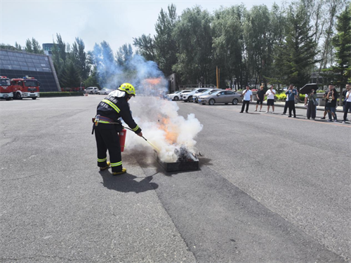 消防器材实操指导环节,消防救援大队教官通过教授灭火器的实际使用,反复演示操作细节,将理论与实际相结合,把消防理论知识运用到实践当中,提高了个人应急反应能力。
