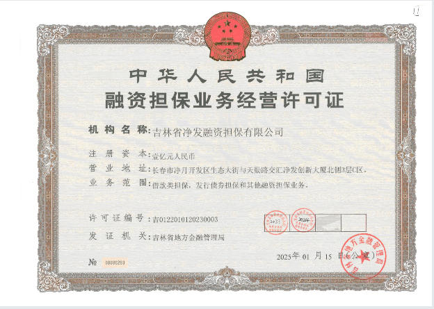 吉林省净发融资担保有限公司融资担保业务经营许可证