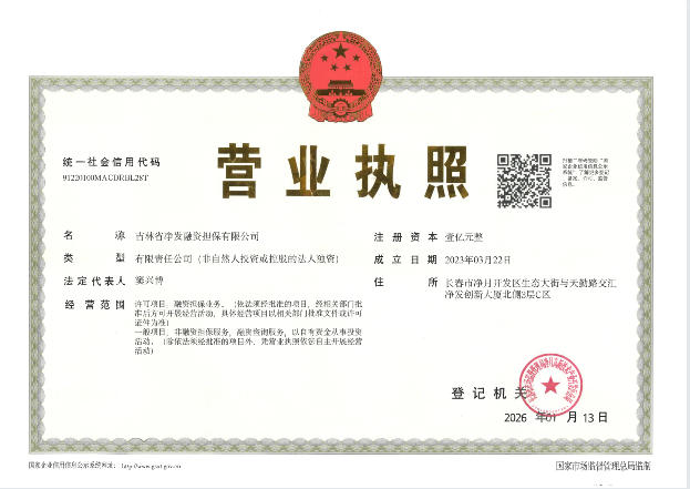 吉林省净发融资担保有限公司工商营业执照